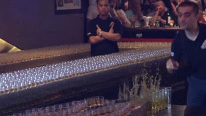 4578 ഗ്ലാസുകള് കൃത്യമായി വീണതായി രേഖപ്പെടുത്തിയപ്പോള് അത് ലോക റെക്കോര്ഡായി. ബഹാമസിലെ സെനോര് ഫ്രാഗ്സ് ബാറില് ഒരുക്കിയ 4107 ഗ്ലാസുകളുടെ റെക്കോര്ഡ് ആണ് ദുബായില് മറികടന്നത്. 22 മണിക്കൂറോളം ചെലവഴിച്ചാണ് ഗിന്നസ് റെക്കോര്ഡ് പ്രകടനത്തിനായി അധികൃതര് ഗ്ലാസുകളും മറ്റും ഒരുക്കിയത്.