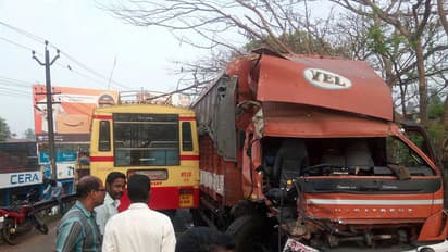 ആലപ്പുഴ: ഹരിപ്പാട് വെച്ച് കെ.എസ്.ആര്.ടി.സി സൂപ്പര്ഫാസ്റ്റും മുട്ട കയറ്റി വന്ന ലോറിയും കൂട്ടിയിടിച്ച് ലോറി ഡ്രൈവര്ക്ക് ഗുരുതര പരിക്ക്. ബസ് യാത്രക്കാര്ക്കും ബസിന്റെ പിന്നില് ബൈക്ക് ഇടിച്ച് കയറി ബൈക്ക് യാത്രക്കാരനും നിസാര പരിക്കേറ്റു. ലോറി ഡ്രൈവര് ശക്തി (45)ക്കാണ് പരിക്കേറ്റത്. ഇയാളെ വണ്ടാനം മെഡിക്കല് കോളേജ് ആശുപത്രിയില് പ്രവേശിപ്പിച്ചു. ബൈക്ക് യാത്രക്കാരന് തഴവ സ്വദേശി രാജീവ്, ബസ് ഡ്രൈവര്, കണ്ടക്ടര്, യാത്രക്കാര് എന്നിവര്ക്ക് നിസ്സാര പരിക്കേറ്റു.