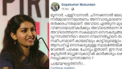 തിരുവന്തപുരം: ദേവികുളം സബ് കളക്ടർ രേണു രാജിനെ വിമർശിച്ച് ധനമന്ത്രി തോമസ് ഐസക്കിന്റെ അസിസ്റ്റന്റ് പ്രൈവറ്റ് സെക്രട്ടറിയുടെ ഫെയ്സ്ബുക്ക് പോസ്റ്റ്. ശാസ്ത്ര സാഹിത്യ പരിഷത്തിന്റെ സജീവ പ്രവർത്തകൻ കൂടിയായ ഗോപകുമാർ മുകുന്ദനാണ് ഫേസ്ബുക്ക് പോസ്റ്റുമായി രംഗത്തെത്തിയിരിക്കുന്നത്. മലയോരത്തെ ബ്യൂറോക്രാറ്റിക് നിയന്ത്രണത്തിൽ കൊണ്ടു വരുന്നുവെന്നും, എസ് രാജേന്ദ്രന്റെ സാന്നിധ്യത്തിൽ റവന്യൂ ഉദ്യോഗസ്ഥരെ മറികടന്ന് നിർമ്മാണം നടക്കുക മാത്രമാണ് ചെയ്തതെന്നും ഫേസ്ബുക്ക് പോസ്റ്റിൽ വിശദീകരിക്കുന്നു. ഒന്നിനോടും പ്രതിബദ്ധതയില്ലെന്ന് ബ്യൂറോക്രാറ്റുകൾ ദിനംപ്രതി തെളിയിക്കുകയാണെന്നും കൂടി പറഞ്ഞാണ് ഫേസ്ബുക്ക് പോസ്റ്റ് അവസാനിക്കുന്നത്.