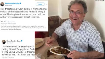 ബിജെപി ഭരിക്കുന്ന ഗോവയില് ബീഫ് കഴിച്ചുകൊണ്ടുതന്നെ ഉച്ചഭക്ഷണമാകാമെന്ന് തീരുമാനിച്ചു- എന്ന അടിക്കുറിപ്പോടെയായിരുന്നു രാമചന്ദ്ര ഗുഹ ചിത്രം ട്വിറ്ററില് പോസ്റ്റ് ചെയ്തിരുന്നത്. തുടര്ന്ന് ഫോണിലൂടെയും ട്വിറ്ററിലൂടെയും ഭീഷണികള് വരികയായിരുന്നു. ഇതോടെ ചിത്രം പിന്വലിച്ചു.