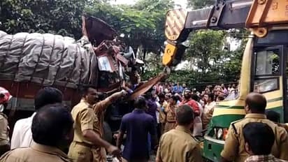 വാഹനത്തിനുള്ളില് കുടുങ്ങിയ ട്രക്ക് ഡ്രൈവറെ വാഹനം വെട്ടിപ്പൊളിച്ച് പുറത്തെടുക്കാനുള്ള ശ്രമം തുടരുന്നു. അപകടത്തെ തുടര്ന്ന് ദേശീയ പാതയില് ദീര്ഘനേരം ഗതാഗതം തടസ്സപ്പെട്ടു. കൊല്ലം സിറ്റി പൊലീസ് കമ്മീഷണര് സ്ഥലത്തെത്തി.