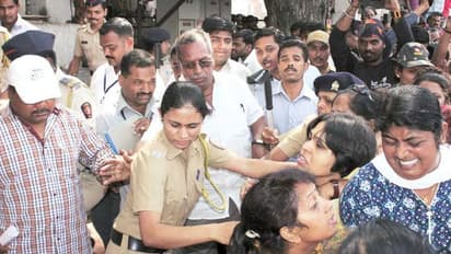 നാസിക്കിലെ ത്രൈയംബകേശ്വര് ക്ഷേത്രത്തില് പ്രവേശിക്കാന് ശ്രമിക്കവെ പൊലീസ് തടയുന്നു