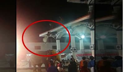 കോട്ടയം: ഏറ്റുമാനൂർ ക്ഷേത്രത്തിൽ ഉത്സവത്തിനിടെ ആന ഇടഞ്ഞു. ആനപ്പുറത്തിരുന്നയാളെ സാഹസികമായിട്ടാണ് രക്ഷപ്പെടുത്തിയത്. അപകടത്തിനിടെയുണ്ടായ തിക്കിലും തിരക്കിലും 8 പേർക്ക് പരിക്കേറ്റിട്ടുണ്ട്, ഏറ്റുമാനൂർ മഹാദേവ ക്ഷേത്ര ഉത്സവത്തനിടെയാണ് ആനയിടഞ്ഞത്. പുലർച്ചെ ആറാട്ട് എഴുന്നള്ളിപ്പിന് മുൻപായാണ് സംഭവം.