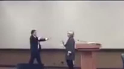 ട്രംപിന്റെ അപരനായി സ്റ്റേജിലെത്തുന്നത് ഹിലരിയുടെ സഹായി ആണ്. ഇരുവരും സംവാദത്തിനായി സ്റ്റേജിലെത്തുന്നതും ഹിലരി ഹസ്തദാനത്തിനായി കൈനീട്ടുമ്പോള് ആലിംഗനം ചെയ്യാനായി ട്രംപിന്റെ അപരന് വരുന്നതുമാണ് രസകരമായ വീഡിയോയിലുളളത്. ആലിംഗനം ചെയ്യാനുള്ള ശ്രമം കൈകൊണ്ട് തട്ടിമാറ്റി ഹിലരി മുന്നോട്ടുപോകുമ്പോള് സഹായി ഹിലരിയെ ഓടിച്ചിട്ട് പിടികൂടുന്നത് കണ്ടുനില്ക്കുന്നവരില് കൂട്ടച്ചിരി പടര്ത്തുന്നതും വിഡിയോയിലുണ്ട്.