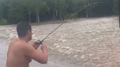 ദമീന് മോങ്ക് എന്നയാള് ഫേസ്ബുക്കില് പോസ്റ്റ് ചെയ്ത ഈ വീഡിയോ ഇപ്പോള് വൈറലാണ്. വെള്ളപ്പൊക്കം വന്ന് റോഡും പാര്ക്കുമെല്ലാം നിറഞ്ഞൊഴുകുമ്പോഴാണ് ഇയാള് അവിടെ ചൂണ്ടയിടുന്നത്. ഒരു വലിയ മീനുമായാണ് ഒടുവില് ഇയാള് സ്ഥലം വിട്ടത്.