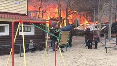 റഷ്യയിലെ ആർക്ടിക് പ്രദേശത്താണ് ഈ സംഭവം നടന്നത്. ' ആടാൻ തോന്നി. അവൻ ഇരുന്ന് ഊഞ്ഞാലാടി 'എന്നാണ് അവന്റെ ബന്ധു ഒരു പ്രാദേശിക പ്രത്രത്തോട് പറഞ്ഞത്. അപകടം നടക്കുന്നത് അവൻ ഊഞ്ഞാലാടുന്ന ഇടത്തുനിന്നും ദൂരെയായതിനാൽ അവൻ സുരക്ഷിതനായിരുന്നു എന്നും അവർ പറഞ്ഞു. എന്തായാലും, പിന്നിൽ ഇത്ര വലിയ തീപിടുത്തം നടക്കുമ്പോഴും കൂളായി ഊഞ്ഞാലാടാൻ അവൻ കാണിച്ച ധൈര്യം, വൈറലായിരിക്കുകയാണ്..!