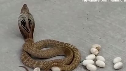 അതിനു ശേഷം സമീപത്തെ പാമ്പുപിടുത്താക്കരെ വിവരം അറിയിച്ചു. എന്നാൽ പമ്പുപിടുത്തക്കാരന് എത്തും മുന്പേ മൂര്ഖന് നിരത്തിലേക്ക് ഇഴഞ്ഞു നീങ്ങി. തിരക്കേറിയ റോഡിലെത്തിയ പാമ്പ് അവിടെത്തന്നെ മുട്ടകളിടാൻ തുടങ്ങി. റോഡിലിറങ്ങിയ പാമ്പ് മുട്ടയിടുന്ന ദൃശ്യങ്ങൾ അധ്യാപകൻ തന്നെയാണ് പകർത്തിയത്.