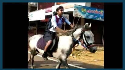 മാള: കുതിരപ്പുറത്ത് സ്കൂളില് പോകുന്ന ഒരു വിദ്യാര്ത്ഥിനി അതാണ് അടുത്തിടെ ടിക്ടോക് അടക്കമുള്ള സോഷ്യല് മീഡിയയില് വൈറലായത്. മാള ഹോളിഗ്രേഡ് സ്കൂളിലെ പത്താം ക്ലാസ് വിദ്യാര്ത്ഥിനിയായ സി.എ കൃഷ്ണയാണ് ഈ കുതിര സവാരിക്കാരി. നാരായണത്ത് മഹാവിഷ്ണു ക്ഷേത്രത്തിലെ പൂജാരി അജയ് കാലിന്ദിയുടെ മകളാണ് കൃഷ്ണ.