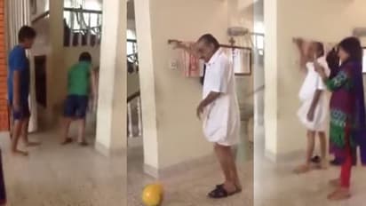 കോട്ടയം: പേരക്കുട്ടികള്ക്കൊപ്പം വീടിനകത്ത് പന്തുകളിക്കുന്ന കെ എം മാണിയുടെ വീഡിയോ സാമൂഹ്യ മാധ്യമങ്ങളില് വൈറലാകുന്നു. ഊര്ജ്ജസ്വലതയോടെ പന്തുതട്ടുന്നതിനിടെ കാലില് നിന്ന് ചെരിപ്പ് ഊരിത്തെറിച്ച് പോകുന്നത് കാണാം. ചെരുപ്പെടുത്തോണ്ട വാടാ എന്നും, ഞാന് വലിയ ഫുട്ബോളറായിരുന്നുവെന്നും മാണി വീഡിയോയില് പറയുന്നുണ്ട്.