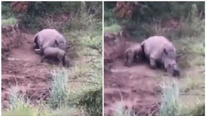 ഇന്ത്യന് വനം വകുപ്പ് ഉദ്യോഗസ്ഥനായ പര്വീണ് കസ്വാനാണ് വീഡിയോ ട്വിറ്ററില് പങ്കുവെച്ചത്. 'വേട്ടയുടെ നേര്ചിത്രം. വേട്ടക്കാര് കൊന്ന അമ്മ കാണ്ടാമൃഗത്തെ ഉണര്ത്താന് ശ്രമിക്കുകയാണ് കുഞ്ഞുകാണ്ടാമൃഗം. ഹൃദയഭേദകവും കണ്ണുതുറപ്പിക്കുന്നതും' എന്ന അടിക്കുറിപ്പോടെയാണ് വീഡിയോ പങ്കുവെച്ചത്.