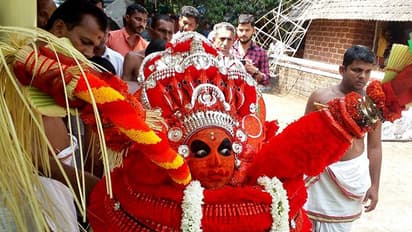 കാസര്കോട്: തിങ്ങി നിറഞ്ഞ പുരുഷാരവത്തിന് നടുവിലേക്ക് വിഷ്ണു മൂര്ത്തിയുടെ നരസിംഹ അവതാരമായി എത്തിയത് പതിനഞ്ച് വയസുകാരന്. ബിരിക്കുളം പൊടവടുക്കം ക്ഷേത്രത്തിലെ കളിയാട്ട ഉത്സവത്തിലാണ് പത്താം ക്ലാസുകാരന് വിഷ്ണുദത്തന് നരസിംഹ മൂര്ത്തിയായി നാട്ടുകാര്ക്ക് അനുഗ്രഹ വര്ഷത്തിനെത്തിയത്. ബിരിക്കുളത്തെ കളിയാട്ട കാവില് അച്ഛനും തെയ്യം കലാകാരനുമായ വേണുവിന്റെ സഹയാത്തിനെത്തിയ വിഷ്ണുദത്തന് നിനച്ചിരിക്കാതെയാണ് വിഷ്ണു മൂര്ത്തിയുടെ കോലം അണിയാനുള്ള ഭാഗ്യം കൈവന്നത്. ക്ഷേത്രത്തിലെ ആദ്യദിനത്തില് വിഷ്ണുദത്തനോട് തെയ്യകൊലമണിയാന് അവശ്യ പ്പെട്ടപ്പോള് ഈ കൊച്ചു തെയ്യം കലാകാരന് അത് ശിരസാവഹിക്കുകയായിരുന്നു.