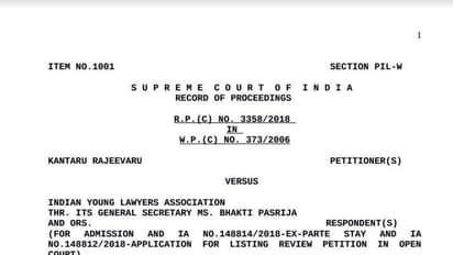 എല്ലാ റിവ്യൂ ഹർജികളും, മറ്റ് ബന്ധപ്പെട്ട ഹർജികളും ജനുവരി 22-ന് തുറന്ന കോടതിയിൽ പരിഗണിക്കും. അത് ബന്ധപ്പെട്ട ബഞ്ചിലാകും വരിക. സെപ്റ്റംബർ 28 - ന് സുപ്രീംകോടതി പുറപ്പെടുവിച്ച വിധിയ്ക്ക് സ്റ്റേ ഇല്ലെന്ന് ഇവിടെ വ്യക്തമാക്കുകയാണ്. (റിട്ട് പെറ്റീഷൻ (സിവിൽ) നം: 373, 2006 - ഇന്ത്യൻ യങ് ലോയേഴ്സ് അസോസിയേഷൻ & മറ്റുള്ളവർ v/s സ്റ്റേറ്റ് ഓഫ് കേരള)