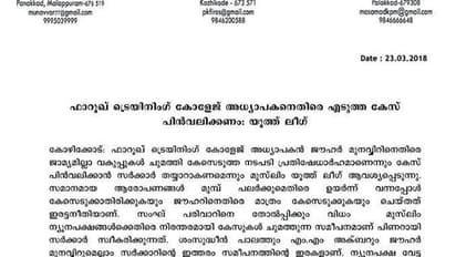 കോഴിക്കോട്: ഫറൂഖ് കോളജ് അധ്യാപകനെതിരെ എടുത്ത കേസ് പിൻവലിക്കണമെന്ന് യൂത്ത് ലീഗ്. ജൗഹർ മുനവറിനെതിരെ ജാമ്യമില്ലാ വകുപ്പ് ചുമത്തി കേസെടുത്തത് പ്രതിഷേധാർഹമാണെന്നും യൂത്ത് ലീഗ് വ്യക്തമാക്കി. സമാനമായ ആരോപണങ്ങള് മുമ്പ് പലര്ക്കുമെതിരെ വന്നിട്ടും ജൗഹർ മുനവറിനെതിരെ മാത്രം കേസെടുക്കുന്നത് ഇരട്ടനീതിയാണ്. സംഘപരിവാറിനെ തോല്പ്പിക്കുന്ന രീതിയില് ന്യൂനപക്ഷങ്ങള്ക്കെതിരെ നിരന്തരമായി കേസുകള് ചുമത്തുന്ന നിലപാടാണ് പിണറായി സര്ക്കാര് സ്വീകരിക്കുന്നതെന്നും ആരോപണം.