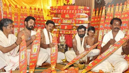 വില്ല് നിര്മിക്കുന്നതിനുമുണ്ട് ചില ചിട്ടവട്ടങ്ങള്. 41 ദിവസത്തെ വ്രതാനുഷ്ഠാനം വേണം. കരമന വാണിയംമൂല മൂത്താശാരി കുടുംബത്തിന്റെ അവകാശമാണു വില്ല് നിര്മാണം. കേരളത്തിന്റെ ഭൂപടത്തെക്കൂടി ഈ വില്ലിന്റെ രൂപം അനുസ്മരിപ്പിക്കുന്നു.