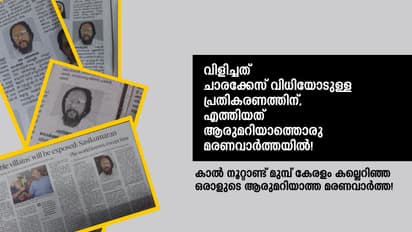 ആരാലും പെട്ടെന്ന് തിരിച്ചറിയപ്പെടാത്ത ഒരു സാധാരണ മരണ വാര്ത്തയായി അയാള്.