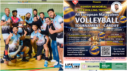 കാര്ഡിഫ്: അകാലത്തില് നമ്മെ വിട്ടുപോയ കാര്ഡിഫ് മലയാളികളുടെ പ്രിയങ്കരനായ ആശിഷിന്റെ ഓര്മയ്ക്കായി 'ആശിഷ് മെമ്മോറിയല് എവര് റോളിംഗ് ട്രോഫി' ഓള് യൂറോപ്യന് മലയാളീസ് വോളിബോള് ടൂര്ണമെന്റ് സംഘടിപ്പിക്കുന്നു. കാര്ഡിഫ് ഡ്രാഗന്സ് സംഘടിപ്പിക്കുന്ന ടൂര്ണമെന്റ് മാര്ച്ച് 7ശനി, 2026ന് അരങ്ങേറും. രാവിലെ 9.30 മുതല് വൈകുന്നേരം 7.30 വരെ കാര്ഡിഫ്, സ്പോര്ട് വെയ്ല്സ് സെന്റര്, സോഫിയ ഗാര്ഡന്സിലാണ് മത്സരം. കാര്ഡിഫ് നഗരത്തിന്റെ മേയര് അഡ്രിയന് റോബ്സണ്, കൗണ്സിലര് ജെയ്ന് കോവാന്, വോളിബോള് വെയില്സ് ചെയര്മാന് കാള് ഹാര്വുഡ് തുടങ്ങിയവര് മുഖ്യ അതിഥികള് ആയിരിക്കും.