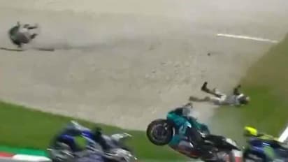 ട്രാക്കിലൂടെ അതിവേഗം കുതിച്ചുപായുന്നതിനിടെ തൊട്ടു മുമ്പില് പോകുകയായിരുന്ന ഫ്രാങ്കോ മോര്ബിഡില്ലിയുടെ ബൈക്കില് തട്ടിയ വലെന്റിനോയുടെ ബൈക്ക് ട്രാക്ക് വീട്ട് തെറിച്ചുപോയി. ബൈക്കില് നിന്ന് തെറിച്ചുവീണ വലെന്റിനോ ട്രാക്കിന് പുറത്തേക്ക് തെറിച്ചുവീണു. ഇതിനിടെ നിരവധി തവണ കരണം മറിഞ്ഞു. നിയന്ത്രണം വിട്ട ബൈക്ക് വീണ്ടും ട്രാക്കിലേക്ക് തെറിച്ചുവീണ് മറ്റ് റൈഡര്മാര്ക്കും ഭീഷണിയാവുകയും ചെയ്തു. 300 കിലോമീറ്ററിലേറെ വേഗത്തില് പോകുമ്പോഴായിരുന്നു അപകടം. ഞെട്ടിക്കുന്ന അപകടത്തെത്തുടര്ന്ന് മത്സരം നിര്ത്തിവെച്ചു.