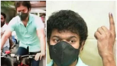 കറുത്ത മാസ്കണിഞ്ഞ് സൈക്കിള് ചവിട്ടിയാണ് വിജയ് തന്റെ സമ്മതിദാനം ഉപയോഗിക്കാനായെത്തിയത്. തമിഴ്നാട് തെരഞ്ഞെടുപ്പിലെ പോളിംഗ് ദിനത്തിൽ തന്നെ വിജയ് സൈക്കിളിൽ വോട്ടു ചെയ്യാനെത്തിയത് പെട്രോൾ ഡീസൽ വിലവർധനയ്ക്കെതിരെയുള്ള പ്രതിഷേധത്തിന്റെ ഭാഗമായാണെന്ന് നീരീക്ഷകര് വിലയിരുത്തുന്നു. നീലാങ്കരിയിലെ വേൽസ് യൂണിവേഴ്സിറ്റി ബൂത്തിലാണ് വിജയ് വോട്ട് രേഖപ്പെടുത്തിയത്.