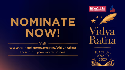 നോമിനേഷനുകൾ സമർപ്പിക്കാൻ www.asianetnews.events/vidyaratna എന്ന വെബ്സൈറ്റ് സന്ദർശിക്കുക.