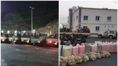 ആലുമുഹമ്മദിലെ അല്ഹുറ മലയിലെ ഗുഹകളിലും മറ്റുമായാണ് ഇവര് താമസിച്ചിരുന്നത്. അനധികൃത മാര്ഗങ്ങളിലൂടെ രാജ്യത്ത് പ്രവേശിച്ചവരും മയക്കുമരുന്ന് അടക്കമുള്ള നിരോധിത വസ്തുക്കള് കടത്തിയവരും പിടിയിലായവരില് ഉള്പ്പെടുന്നു. സിഗിരറ്റിന്റെയും മയക്കുമരുന്നിന്റെയും പാന്മസാലയുടെയും വന്ശേഖരവും ഇവിടെനിന്ന് പിടികൂടിയിട്ടുണ്ട്. പിടിയിലായവരെ നടപടികള് പൂര്ത്തിയാക്കി നാടുകടത്തും.
