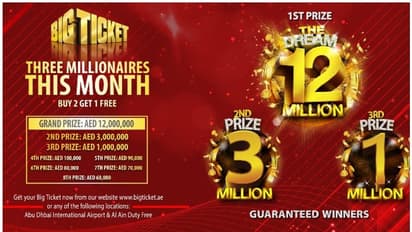 ബിഗ് ടിക്കറ്റ് ഡ്രീം 12 മില്യന് സീരിസിലെ അടുത്ത നറുക്കെടുപ്പില് 1.2 കോടി ദിര്ഹമാണ്(24 കോടിയോളം ഇന്ത്യന് രൂപ) ഗ്രാന്റ് പ്രൈസ്. രണ്ടാം സമ്മാനമായി മുപ്പത് ലക്ഷം ദിര്ഹവും(5 കോടിയിലധികം ഇന്ത്യന് രൂപ) ഇതിന് പുറമെ മൂന്നാം സമ്മാന വിജയികളെ കാത്തിരിക്കുന്നത് 10 ലക്ഷം ദിര്ഹവുമാണ്(ഒരു കോടിയിലധികം ഇന്ത്യന് രൂപ). കൂടാതെ മറ്റ് അഞ്ച് ക്യാഷ് പ്രൈസുകളും വിജയികള്ക്ക് ലഭിക്കും. മൂന്നുപേര്ക്ക് കോടീശ്വരന്മാരാകാന് അവസരമൊരുക്കുന്ന ബിഗ് ടിക്കറ്റിന്റെ ഏപ്രില് മാസത്തെ 227-ാമത് തത്സമയ നറുക്കെടുപ്പില് ഡ്രീം കാര് പ്രൊമോഷന് വിജയികള്ക്ക് പോര്ഷെ സ്പൈഡര് 718 മോഡല് ആഢംബര കാര് സമ്മാനമായി ലഭിക്കും.