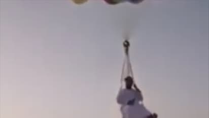 യുഎഇയില് നിന്ന് ഒമാനിലേക്ക് പറക്കുന്നുവെന്നാണ് വീഡിയോയില് പറയുന്നത്. കസേരയില് ഇരിക്കുന്നയാളുടെ മക്കളെയും കാണാം. തമാശ അല്പ്പനേരം കഴിയുമ്പോള് തന്നെ കാര്യമായി മാറുന്നു. ബലൂണ് വളരെ ഉയരത്തിലെത്തുമ്പോള് താഴെ നില്ക്കുന്നവര് പരിഭ്രാന്തരായി ഓടുന്നതും കാണാം. ഒമാന് അതിര്ത്തിയില് വെച്ച് അതിര്ത്തി സുരക്ഷാ സേനയാണ് പിന്നീട് ഇയാളെ കണ്ടെടുത്തത്. ബലൂണ് തകര്ന്ന് താഴെ വീണ് മലനിരകള്ക്കിടയില് കുടുങ്ങിക്കിടന്ന ഇയാള് ഗുരുതരാവസ്ഥയിലായിരുന്നു. ഹെലികോപ്റ്ററിലാണ് രക്ഷാ പ്രവര്ത്തകര് പിന്നീട് ഇയാളെ ആശുപത്രിയിലേക്ക് മാറ്റിയത്.
