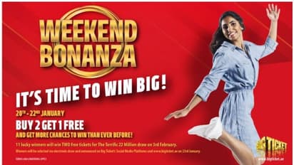 ഈ 'വീക്കെന്ഡ് ബൊണാന്സ' നറുക്കെടുപ്പില് തെരഞ്ഞെടുക്കപ്പെടുന്ന 11 ഭാഗ്യവാന്മാര്ക്കാണ്, 44 കോടി രൂപ സമ്മാനം നല്കുന്ന 236-ാം സീരിസ് നറുക്കെടുപ്പിലേക്കുള്ള രണ്ട് ബിഗ് ടിക്കറ്റുകള് വീതം സൗജന്യമായി ലഭിക്കുക. വിജയികളുടെ പേര് വിവരങ്ങള് ജനുവരി 23ന് ബിഗ് ടിക്കറ്റിന്റെ സോഷ്യല് മീഡിയാ പ്ലാറ്റ്ഫോമുകളിലൂടെ അറിയിക്കും.