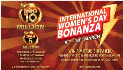 അടുത്ത മാസം മൂന്നാം തീയ്യതി നടക്കാനിരിക്കുന്ന ബിഗ് ടിക്കറ്റ് ബിഗ് 10 മില്യന് നറുക്കെടുപ്പില് രണ്ട് കോടീശ്വരന്മാരെയാണ് തെരഞ്ഞെടുക്കുന്നത്. ഒന്നാം സമ്മാനം ലഭിക്കുന്നയാളിന് ഒരു കോടി ദിര്ഹം (20 കോടിയോളം ഇന്ത്യന് രൂപ) ലഭിക്കുമ്പോള് രണ്ടാം സ്ഥാനക്കാരന് അരക്കോടി ദിര്ഹമാണ് (10 കോടിയോളം ഇന്ത്യന് രൂപ) സ്വന്തമാക്കാനാവുന്നത്. ഇതിന് പുറമെ എട്ട് ക്യാഷ് പ്രൈസുകളും ഡ്രീം കാര് നറുക്കെടുപ്പും നടക്കും. വനിതാ ദിനത്തിലെ ഈ തകര്പ്പന് ഓഫറിലൂടെ നിങ്ങള്ക്ക് അടുത്ത കോടീശ്വരനാവാനുള്ള കൂടുതല് അവസരമാണ് ബിഗ് ടിക്കറ്റ് ഒരുക്കുന്നത്.