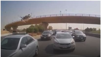 മേല്പ്പാലത്തിന് താഴെയുള്ള റോഡിലൂടെ സഞ്ചരിക്കുകയായിരുന്ന ഒരു കാറിന്റെ പിന് ഭാഗത്ത് ഘടിപ്പിച്ചിരുന്ന ക്യാമറയിലാണ് അപകടത്തിന്റെ ദൃശ്യങ്ങള് പതിഞ്ഞത്. റിയാദിലെ ഈസ്റ്റേണ് റിങ് റോഡിലാണ് ഈ അപകടം നടന്നതെന്ന് റിപ്പോര്ട്ടുകള് പറയുന്നു. സംഭവത്തില് അന്വേഷണം പുരോഗമിക്കുകയാണ്.