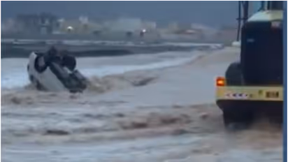 അപകടവിവരം ലഭിച്ച ഉടൻ സിവിൽ ഡിഫൻസ് ആൻഡ് ആംബുലൻസ് അതോറിറ്റി സംഘങ്ങൾ സ്ഥലത്തെത്തി നടത്തിയ അതിവേഗ രക്ഷാപ്രവർത്തനത്തിലൂടെയാണ് ഡ്രൈവറുടെ ജീവൻ രക്ഷപ്പെടുത്തിയത്. തുടർന്ന് സംഭവത്തിൽ ഗുരുതര അശ്രദ്ധ കാട്ടിയെന്ന കാരണത്താൽ ഡ്രൈവറെ പൊലീസ് അറസ്റ്റ് ചെയ്യുകയുമുണ്ടായി. വടക്കൻ ഗവർണറേറ്റുകളിലുടനീളം തുടർച്ചയായി പെയ്യുന്ന കനത്ത മഴയാണ് അപകടത്തിന് പശ്ചാത്തലമായത്. നിലവിലെ കാലാവസ്ഥാ സാഹചര്യങ്ങൾ പ്രദേശത്ത് ആശങ്ക ഉയർത്തുകയാണ്. വ്യാപകമായ മേഘാവരണം ദൃശ്യപരിധി കുറയ്ക്കുന്നതിനും താപനിലയിൽ മാറ്റങ്ങൾ ഉണ്ടാകുന്നതിനും കാരണമായി. ചില ഇടങ്ങളിൽ ഇടത്തരം മുതൽ ശക്തമായ മഴ വരെ രേഖപ്പെടുത്തി.