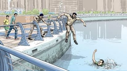 അബുദാബിയില് കടലിനോട് ചേര്ന്നുള്ള റോഡിലാണ് രണ്ട് കാറുകള് കൂട്ടിയിടിച്ച് അപകടമുണ്ടായത്. അപകടത്തില് കടുത്ത മാനസിക അഘാതം സംഭവിച്ച ഏഷ്യക്കാരനായ ഡ്രൈവര് വാഹനത്തില് നിന്ന് പുറത്തിറങ്ങി കടലില് ചാടുകയായിരുന്നുവെന്നാണ് പൊലീസ് അറിയിച്ചത്. അപകട വിവരമറിഞ്ഞ് സ്ഥലത്തെത്തിയ ട്രാഫിക് പൊലീസ് പട്രോള് സംഘത്തോട് ഡ്രൈവര് കടലില് ചാടിയ വിവരം നാട്ടുകാര് പറഞ്ഞു. ഇതോടെ ട്രാഫിക് പട്രോള് സംഘത്തിലെ ഫസ്റ്റ് അസിസ്റ്റന്റ് റഷീദ് സലീം അല് ശെഹി ഉടന് തന്നെ ഇയാളെ രക്ഷിക്കാനായി കടലിലേക്ക് ചാടുകയായിരുന്നു.