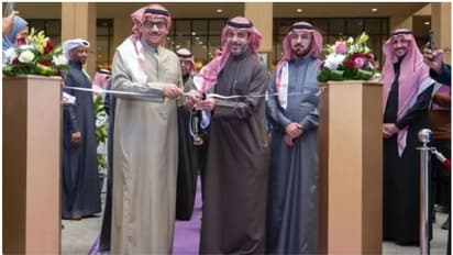 (ഫോട്ടോ: സൗദി അറേബ്യയിലെ ആദ്യത്തെ ആർട്സ് കോളജ് സാംസ്കാരിക വകുപ്പ് ഡെപ്യൂട്ടി മന്ത്രി ഹാമിദ് ബിൻ മുഹമ്മദ് ഫയാസും സർവകലാശാല മേധാവി ഡോ. ബദ്റാൻ അൽഉമറും ചേർന്ന് ഉദ്ഘാടനം ചെയ്യുന്നു)
