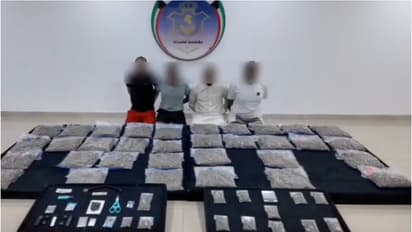 രാജ്യത്തിനകത്ത് നിന്ന് രണ്ട് ആഭ്യന്തര മന്ത്രാലയ ഉദ്യോഗസ്ഥർ ഉൾപ്പെടെ മൂന്ന് പേരെ അറസ്റ്റ് ചെയ്തു. പിടിയിലായ മൂന്നാമൻ പൗരത്വമില്ലാത്ത വ്യക്തിയാണ്. ഈ ശൃംഖല നിയന്ത്രിച്ചിരുന്നത് യുകെയിൽ താമസിക്കുന്ന മറ്റൊരു പൗരത്വമില്ലാത്ത വ്യക്തിയാണെന്ന് അന്വേഷണത്തിൽ കണ്ടെത്തി. റെയ്ഡിൽ ഉദ്യോഗസ്ഥർ 25 കിലോഗ്രാം കഞ്ചാവ്, 100 ലൈറിക ഗുളികകൾ, 2 ഗ്രാം ഷാബു, 10 ഗ്രാം ഹാഷിഷ് എന്നിവ പിടിച്ചെടുത്തു. രണ്ടാമത്തെ കേസിൽ, സൈക്കോട്രോപിക് ലഹരിവസ്തുക്കൾ രാജ്യത്തേക്ക് കടത്താൻ ശ്രമിച്ച ഒരു ഗൾഫ് പൗരനെക്കുറിച്ച് ലഭിച്ച രഹസ്യ വിവരത്തിന്റെ അടിസ്ഥാനത്തിൽ സുരക്ഷാ ഉദ്യോഗസ്ഥർ ഇയാളെ അറസ്റ്റ് ചെയ്തു. വിതരണത്തിനായി കൊണ്ടുവന്ന 5,00,000 കാപ്റ്റഗൺ ഗുളികകളാണ് ഇയാളിൽ നിന്ന് പിടിച്ചെടുത്തത്.