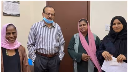 (ഫോട്ടോ: പുഷ്പയും ലക്ഷ്മിയും തങ്ങളെ സഹായിച്ച സാമൂഹ്യപ്രവര്ത്തകരോടൊപ്പം)