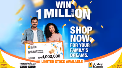 വലിയ വിജയങ്ങൾക്ക് ഉപയോക്താക്കൾക്ക് അവസരം നൽകി മെഗാ ഡീൽസ്! 50,000 ഖത്തർ റിയാൽ സമ്മാനം നൽകിയ ഡ്രോയ്ക്ക് പിന്നാലെ, പുതിയ QAR 50,000 ക്യാഷ് പ്രൈസസ് ക്യാംപെയിൻ മെഗാ ഡീൽസ് അവതരിപ്പിച്ചു. ഡിസംബർ 28-ന് ക്യാംപെയ്ൻ അവസാനിക്കും. ഡിസംബർ 29-നാണ് ഡ്രോ.