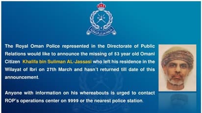 മസ്കറ്റ്: കാണാതായ സ്വദേശി മരണപ്പെട്ടതായി റോയല് ഒമാന് പൊലീസ്. മാര്ച്ച് 27 മുതല് ഇബ്രി വിലായത്തിലെ വീട്ടില് നിന്നും കാണാതായ 53 വയസ്സ് പ്രായമുള്ള ഖലീഫ ബിന് സുലൈമാന് അല് ജാസ്സി എന്ന ഒമാനി പൗരനാണ് മരണപ്പെട്ടതെന്ന് റോയല് ഒമാന് പൊലീസ് ഓണ്ലൈന് സന്ദേശത്തിലൂടെ അറിയിച്ചു. മരണകരണമോ ഇതുമായി ബന്ധപ്പെട്ട് കൂടുതല് വിവരങ്ങളോ ഒന്നും പൊലീസ് പുറത്തുവിട്ടിട്ടില്ല.