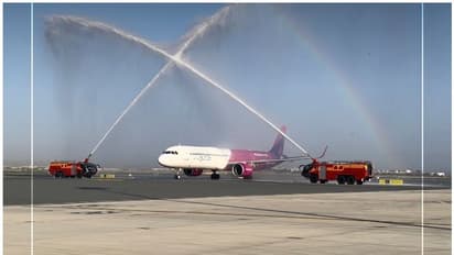 മസ്കത്ത്: ആദ്യമായി മസ്കത്തിലെത്തിയ (Muscat) വിസ് എയർ (Wizz Air) വിമാനത്തിനെ മസ്കത്ത് അന്താരാഷ്ട്ര വിമാനത്താവളത്തില് വാട്ടര് സല്യൂട്ട് (Water salute) നൽകി സ്വീകരിച്ചു. അബുദാബിയിൽ നിന്നും മസ്കത്ത് അന്താരാഷ്ട്ര വിമാനത്തവാളത്തിൽ പറന്നിറങ്ങിയ ആദ്യ വിസ് എയർ വിമാനത്തിനാണ് പരമ്പരാഗത രീതിയിലുള്ള വല്വേല്പ് ലഭിച്ചത്.