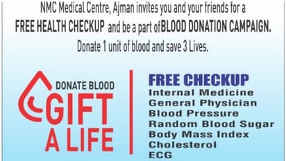 അജ്മാന്: എൻ.എം.സി മെഡിക്കൽ സെന്റർ അജ്മാനിൽ സൗജന്യ മെഡിക്കൽ പരിശോധനയും രക്തദാന ക്യാമ്പും സംഘടിപ്പിക്കുന്നു. ആരോഗ്യ മന്ത്രാലയവും അജ്മാനിലെ വിവിധ ഗവണ്മെന്റ് വിഭാഗങ്ങളുമായി ചേർന്നു സംഘടിപ്പിക്കുന്ന സൗജന്യ മെഡിക്കൽ പരിശോധനയിൽ ഇന്ത്യൻ പീപ്പിൾ ഫോറം, വി.സി.സി ഉൾപ്പെടുന്ന സംഘടനകളും സഹകരിക്കുന്നുണ്ട്.