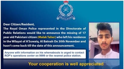 മസ്കറ്റ്: പാകിസ്ഥാന് സ്വദേശിയായ കൗമാരക്കാരനെ ഒമാനില് കാണാതായി. 17കാരനായ പാകിസ്ഥാനി മാലിക്ക് താഹിറിനെ നവംബര് 30 മുതല് ബാത്തിന ഗവര്ണറേറ്റിലെ സുവെയ്ക്കില് നിന്നും കാണാതായതായി റോയല് ഒമാന് പൊലീസിന്റെ അറിയിപ്പില് പറയുന്നു. മാലിക്ക് താഹിറിനെ പറ്റി എന്തെങ്കിലും വിവരം ലഭിക്കുന്നവര് അടുത്തുള്ള പൊലീസ് സ്റ്റേഷനിലോ 9999 എന്ന നമ്പറിലോ ബന്ധപ്പെടണമെന്ന് റോയല് ഒമാന് പൊലീസ് ആവശ്യപ്പെട്ടു.