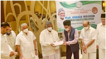 ഇന്ത്യയില് തന്നെ എല്ലാ സംസ്ഥാനങ്ങള്ക്കും അവിടെയുള്ള ന്യൂനപക്ഷങ്ങള്ക്കും മാതൃകയാക്കാന് പറ്റുന്ന വിധം രാഷ്ട്രീയ സാമൂഹിക സാംസ്കാരിക വിദ്യാഭ്യാസ രംഗങ്ങളില് വളരെ ഉന്നതിയില് നില്ക്കുന്ന കേരളത്തിലെ തെന്റ പ്രസ്ഥാനത്തിന്റെ പോഷക ഘടകത്തില് നിന്ന് തന്നെ ഇത്തരമൊരു അംഗീകാരം ലഭിച്ചതില് ഏറെ സന്തോഷമുണ്ടെന്ന് മറുപടി പ്രസംഗത്തില് പ്രഫ. ഖാദര് മൊയ്തീന് പറഞ്ഞു. മതേതര മൂല്യങ്ങളില് ഉറച്ചുനിന്നുകൊണ്ട് ന്യൂനപക്ഷങ്ങളുടെ അവകാശ പോരാട്ടത്തില് മുന്നിരയില് നിലകൊണ്ട പ്രഫ. ഖാദര് മൊയ്തീന് ആറ് പതിറ്റാണ്ടിലപ്പുറമുള്ള സേവനങ്ങളെ മുന് നിര്ത്തിയാണ് പുരസ്കാരം. ഒരു ലക്ഷം രൂപയും ഫലകവുമാണ് പുരസ്കാരം. കെ.എം.സി.സി സൗദി നാഷനല് കമ്മിറ്റിയുടെ സ്ഥാപക നേതാവും മുന് ട്രഷററുമായിരുന്ന പരേതനായ സി. ഹാഷിം എന്ജിനീയറുടെ സ്മരാണാര്ഥമാണ് കര്മ പുരസ്കാരം. പ്രവാസി ലീഗ് സംസ്ഥാന പ്രസിഡന്റ് ഹനീഫ മൂന്നിയൂര്, വൈസ് പ്രസിഡന്റ് ജലീല് വലിയകത്ത്, എം.എസ്.എഫ് നേതാക്കളായ എസ്.എച്ച്. അര്ഷാദ്, പി.വി. അഹമ്മദ് സാജു, കെ.എം.സി.സി നേതാക്കളായ പി.എം. അബ്ദുല് ഹഖ്, റഫീഖ് പാറക്കല്, വി.പി. മുസ്തഫ, ഗഫൂര് പട്ടിക്കാട്, അനസ് പട്ടാമ്പി, അബദു റഹ്മാന് മാളൂര് തുടങ്ങിയവര് ചടങ്ങില് സംബന്ധിച്ചു. സൗദി കെ.എം.സി.സി ജനറല് സെക്രട്ടറി ഖാദര് ചെങ്കള സ്വാഗതവും സെക്രട്ടറിയേറ്റ് അംഗം ഡോ. മുഹമ്മദ് കാവുങ്ങല് നന്ദിയും പറഞ്ഞു.