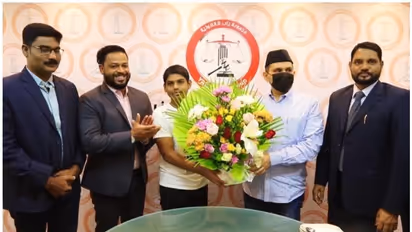 യാബ് ലീഗല് ഗ്രൂപ്പിന്റെ സ്റ്റാഫ് വരച്ച പാണക്കാട് സയ്യിദ് മുഹമ്മദലി ശിഹാബ് തങ്ങളുടെ ചിത്രം യുഎഇയിലെ നിയമ പ്രതിനിധിയും സാമൂഹിക പ്രവര്ത്തകനുമായ സലാം പാപ്പിനിശ്ശേരി മുനവ്വറലി തങ്ങള്ക്ക് കൈമാറി. ആദില് അബ്ദുല് സലാം, ഹബീബ് മുല്ലാളി, ജംഷീര് വടഗിരിയില്, മുന്ദിര് കല്പകഞ്ചേരി, അഡ്വ ശങ്കര് നാരായണന്, അഡ്വ മുഹമ്മദ് അബ്ദുല് റഹ്മാന് അല് സുഐദി തുടങ്ങി യുഎഇയിലെ അഭിഭാഷകരും ചടങ്ങില് പങ്കെടുത്തു.