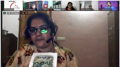 (ഫോട്ടോ: റിയാദിലെ ചില്ല സര്ഗവേദി സംഘടിപ്പിച്ച 'ഐന്റ വായന' കെ.ആര്. മീരയുടെ 'ഖബര്' എന്ന നോവല് അവതരിപ്പിച്ച് പ്രിയ സന്തോഷ് ഉദ്ഘാടനം ചെയ്യുന്നു.)