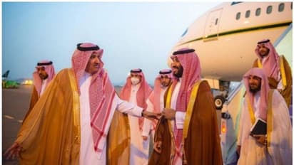 സഹമന്ത്രിയും ക്യാബിനറ്റ് അംഗവുമായ തുര്ക്കി ബിന് മുഹമ്മദ് ബിന് ഫഹദ് ബിന് അബ്ദുല് അസീസ് രാജകുമാരന്, ആഭ്യന്തര മന്ത്രി അബ്ദുല് അസീസ് ബിന് സൗദ് ബിന് നായിഫ് രാജകുമാരന്, നാഷണല് ഗാര്ഡ് മന്ത്രി അബ്ദുല്ല ബിന് ബന്ദര് രാജകുമാരന്, സൗദ് ബിന് സല്മാന് ബിന് അബ്ദുല് അസീസ് രാജകുമാരന്, പ്രിന്സ് ബാദര് ബിന് അബ്ദുള്ള ബിന് ഫര്ഹാന്, മുതിര്ന്ന പണ്ഡിതന്മാരുടെ കൗണ്സില് അംഗവും റോയല് കോര്ട്ട് ഉപദേശകനുമായ ശൈഖ് ഡോ. സാദ് ബിന് നാസര് അല് ശാത്രി, വാണിജ്യ മന്ത്രിയും വാര്ത്താ വിതരണ മന്ത്രിയുമായ ഡോ. മാജിദ് അല് ഖസാബി എന്നിവര് സൗദി കിരീടാവകാശിയെ അനുഗമിച്ചു.