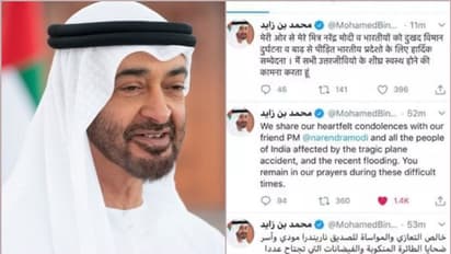 വിമാന, മഴക്കെടുതി ദുരന്തങ്ങളില് അനുശോചനം രേഖപ്പെടുത്തിയ ശൈഖ് മുഹമ്മദ് ഈ ദുരിതകാലത്ത് ഞങ്ങളുടെ പ്രാര്ത്ഥനകളില് നിങ്ങളും ഉണ്ടാകുമെന്നും ട്വീറ്റ് ചെയ്തു. അറബിക്കും ഇംഗ്ലീഷിനും പുറമെ ഇന്ത്യന് ഭാഷകളിലും അനുശോചന സന്ദേശം പങ്കുവെച്ചിട്ടുണ്ട്.