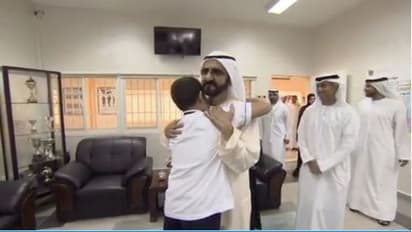 കല്ബയിലെ അല് ഖുദ്വ സ്കൂളിലെ ഓഫീസില് വെച്ച് ശൈഖ് മുഹമ്മദ് വിദ്യാര്ത്ഥിയെ ആലിംഗനം ചെയ്തു. തനിക്കൊപ്പം അവനെ പിടിച്ചിരുത്തി കുശലം ചോദിച്ചു. വിദ്യാര്ത്ഥിയെ അഭിനന്ദിക്കുന്ന വീഡിയോ ദൃശ്യങ്ങള് ശൈഖ് മുഹമ്മദ് തന്നെയാണ് തന്റെ ഇന്സ്റ്റഗ്രാം അക്കൗണ്ടിലൂടെ പുറത്തുവിട്ടത്. പുതിയ അധ്യയന വര്ഷത്തിന്റെ തുടക്കത്തില് കാര്യങ്ങള് പരിശോധിക്കാനെത്തിയ താന് ഒരു ഹീറോയെ സന്ദര്ശിച്ചുവെന്നായിരുന്നു ശൈഖ് മുഹമ്മദ് സാമൂഹിക മാധ്യമങ്ങളില് കുറിച്ചത്. തന്റെ തലമുറയ്ക്ക് തന്നെ അഭിമാനമാണവന്. സ്കൂള് ബസിന് തീപിടിച്ചപ്പോള് അവന്റെ ധീരപ്രവൃത്തിയാണ് സഹപാഠികള്ക്ക് രക്ഷയായത് - ശൈഖ് മുഹമ്മദ് അഭിപ്രായപ്പെട്ടു.