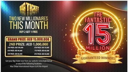 ഇത്തവണ ഫന്റാസ്റ്റിക് 15 മില്യന് നറുക്കെടുപ്പില് ഒന്നാം സമ്മാനം നേടുന്നയാളിന് 1.5 കോടി ദിര്ഹമാണ് (30 ലക്ഷത്തോളം ഇന്ത്യന് രൂപ) ലഭിക്കുക. ഇത്തവണ മാത്രം രണ്ടാം സമ്മാനം നേടുന്നയാളിനും 10 ലക്ഷം ദിര്ഹം (രണ്ട് കോടിയോളം ഇന്ത്യന് രൂപ) ലഭിക്കും. രണ്ട് കോടീശ്വരന്മാര്ക്ക് പുറമെ മറ്റ് ആറ് പേര്ക്ക് കൂടി ക്യാഷ് പ്രൈസുകള് ലഭിക്കും. ജീവിതങ്ങള് മാറ്റിമറിക്കാനും സ്വപ്നങ്ങള് സാക്ഷാത്കരിക്കാനുമാണ് ബിഗ് ടിക്കറ്റ് ലക്ഷ്യമിടുന്നത്. ബിഗ് ടിക്കറ്റ് ക്യാഷ് പ്രൊമോഷന് പുറമെ ജൂണ് മൂന്നിന് നടക്കുന്ന ബിഗ് ടിക്കറ്റ് 228-ാം സീരിസില് ജീപ്പ് ഗ്രാന്റ് ചിറോകും സ്വന്തമാക്കാന് അവസരമുണ്ടാകും.