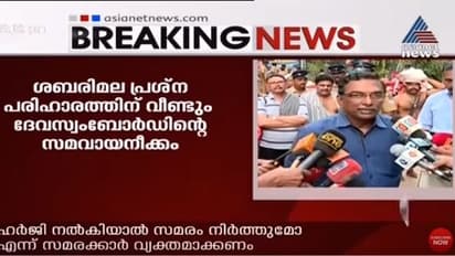 പത്തനംതിട്ട: സമരം അവസാനിപ്പിയ്ക്കാൻ എന്തു വിട്ടുവീഴ്ചയ്ക്കും തയ്യാറാണെന്ന് തിരുവിതാംകൂർ ദേവസ്വം ബോർഡ് പ്രസിഡന്റ് എ.പദ്മകുമാർ. പുനഃപരിശോധനാഹർജി നൽകിയാൽ സമരം നിർത്തുമോ എന്നും എ.പദ്മകുമാർ സമരക്കാരോട് ചോദിച്ചു. ബോർഡിന് രാഷ്ട്രീയമില്ല. ഹർജി നൽകിയാൽ സമരം നിർത്തുമോ എന്ന് സമരനേതാക്കൾ തന്നെ പറയണം. ശബരിമലയിൽ സമാധാനമുണ്ടാക്കാൻ എല്ലാവരും ഒന്നിച്ചു നിൽക്കണം.