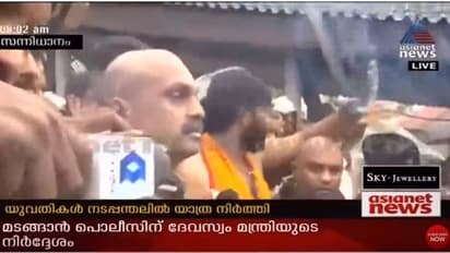 യുവതികള്ക്ക് മുന്നില് ഒരുസംഘം ആളുകള് ശരണം വിളിച്ച് കുത്തിയിരിക്കുകയും പ്രതിഷേധിക്കുകയും ചെയ്തിരുന്നു. സമവായത്തിന് പൊലീസ് ശ്രമിച്ചെങ്കിലും അവര് പ്രതിഷേധം തുടര്ന്നു. ഉപദ്രവിക്കാന് വന്നതല്ലെന്നും നിയമം നടപ്പാക്കാന് അനുവദിക്കണമെന്നും പൊലീസ് അഭ്യര്ത്ഥിച്ചെങ്കിലും അവര് വഴങ്ങിയില്ല. ഇതേത്തുടര്ന്നാണ് പൊലീസിന് മടങ്ങാന് മന്ത്രി നിര്ദ്ദേശം നല്കിയത്.