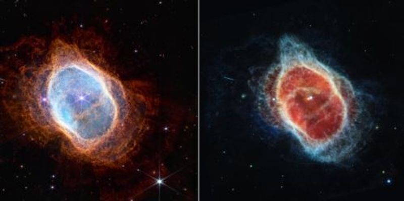 സതേണ് റിംഗ് നെബുല എന്നറിയപ്പെടുന്ന എന്ജിസി 3132 എന്ന പ്ലാനറ്ററി നെബുലയുടെ ഏറ്റവും പുതിയ ചിത്രവും പകര്ത്തി. ഭൂമിയില് നിന്ന് ഏകദേശം 2,500 പ്രകാശവര്ഷം അകലെയാണ് നെബുല. 'മരിക്കുന്ന നക്ഷത്രത്തിന്റെ അവസാന നൃത്തം' എന്ന വിശേഷണത്തിന്റെ വിശദീകരണവും ചിത്രങ്ങള് നല്കുന്നെന്ന് നാസ വ്യക്തമാക്കി. ചിത്രങ്ങളില് മധ്യഭാഗത്ത് കാണാന് കഴിയുന്ന മങ്ങിയ നക്ഷത്രം എല്ലാ ദിശകളിലേക്കും വാതകത്തിന്റെയും പൊടിയുടെയും വളയങ്ങള് പ്രസരിപ്പിക്കുന്നു. ഈ പ്രതിഭാസം ആയിരക്കണക്കിന് വര്ഷങ്ങളായി നടക്കുകയാണ്. ജെയിംസ് വെബ് സ്പേസ് ടെലിസ്കോപ്പ് ആദ്യമായി നക്ഷത്രത്തെ പൊടിയില് മൂടിയതായി കാണിക്കുന്നത്. സതേണ് റിംഗ് നെബുല ചിത്രത്തില് ഏതാണ്ട് മുഖാമുഖം കാണാം.