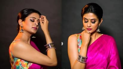 മജന്ത പ്ലെയിൻ സാരിയും സ്ലീവ് ലെസ്സ് ബ്ലൗസുമണിഞ്ഞ ചിത്രങ്ങളാണ് താരം പങ്കുവച്ചിരിക്കുന്നത്. 'സൗന്ദര്യം കണ്ണുകളെ കീഴടക്കും എന്നാൽ വ്യക്തിത്വം ഹൃദയമാണ് കവരുക' എന്ന ക്യാപ്ഷനിലൂടെയാണ് പ്രിയ പുത്തൻ ചിത്രങ്ങൾ പങ്കിട്ടത്.